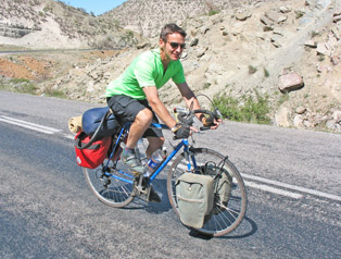 Mark's 7:15 arrival turns out to be 8:00 am. Two minutes later we stop so he can buy breakfast. It's 8:15 am before we are moving and I'm a bit worried about the slow start. But the route is quite nice, and the company is great. The only notable part of the morning's ride was when a Turkish driver pulled over, waved us over, and told Mark that we bicyclists should turn back because of road problems up ahead. Sounded serious, but what could we do - there really wasn't an alternative route. Sure enough, a half hour later we came upon two road-construction areas, each with half-kilometer stretches of unpaved broken rock. It was a bit rough for riding, but totally passable. I'm glad we ignored this well-meant warning, especially since there was no alternative route.